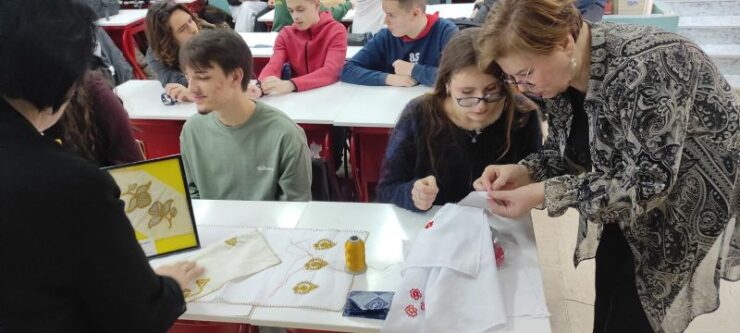 U ponedjeljak, 24.02.2026. godine, u okviru specifičnih oblika rada, naši učenici IX razreda imali su priliku prisustvovati predavanju i učestvovati u praktičnoj radionici zlatoveza. Svojim dolaskom, Udruženje „Sahan“ obogatilo je ovaj susret toplinom i inspirativnom atmosferom, omogućivši učenicima ne samo ugodno druženje, već i neposredno upoznavanje s tradicijom i ljepotom ovog vrijednog oblika ručnog veza. Radionicu je organizovala i rado prisustvovala naša nastavnica likovne kulture Senka Ivković-Bešić. Zanimanje učenika za ovu radionicu je bilo izuzetno,a fotografije možete pogledati u našoj galeriji na sljedećem linku: RADIONICE
